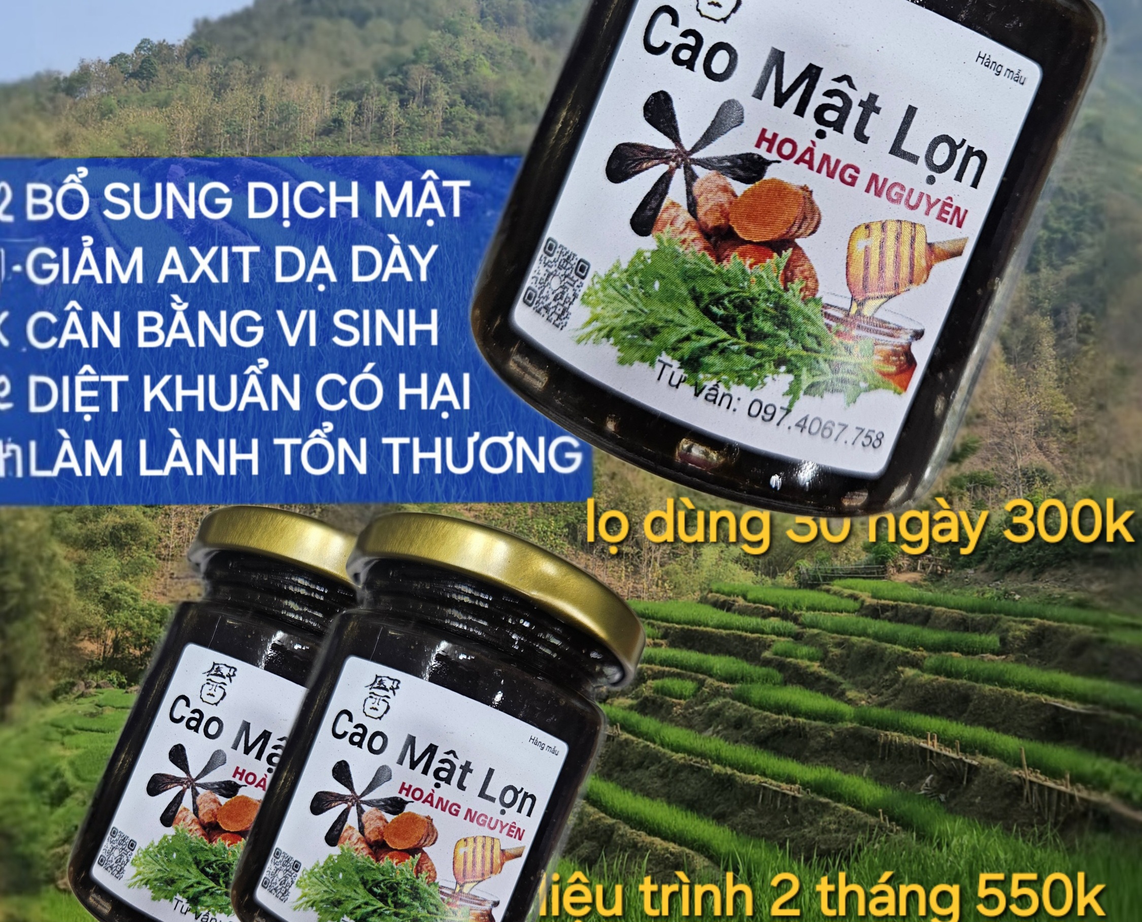 Cao mật lợn Hoàng Nguyên là sản phẩm được chiết xuất từ mật lợn và các loại thảo dược hoàn toàn tự nhiên, trải qua quá trình tinh chế cẩn thận để giữ trọn vẹn dưỡng chất quý giá. Đây là phương thức cổ truyền được dân gian gọi là “phương thức thần kỳ” với nhiều công dụng tốt cho sức khỏe như: