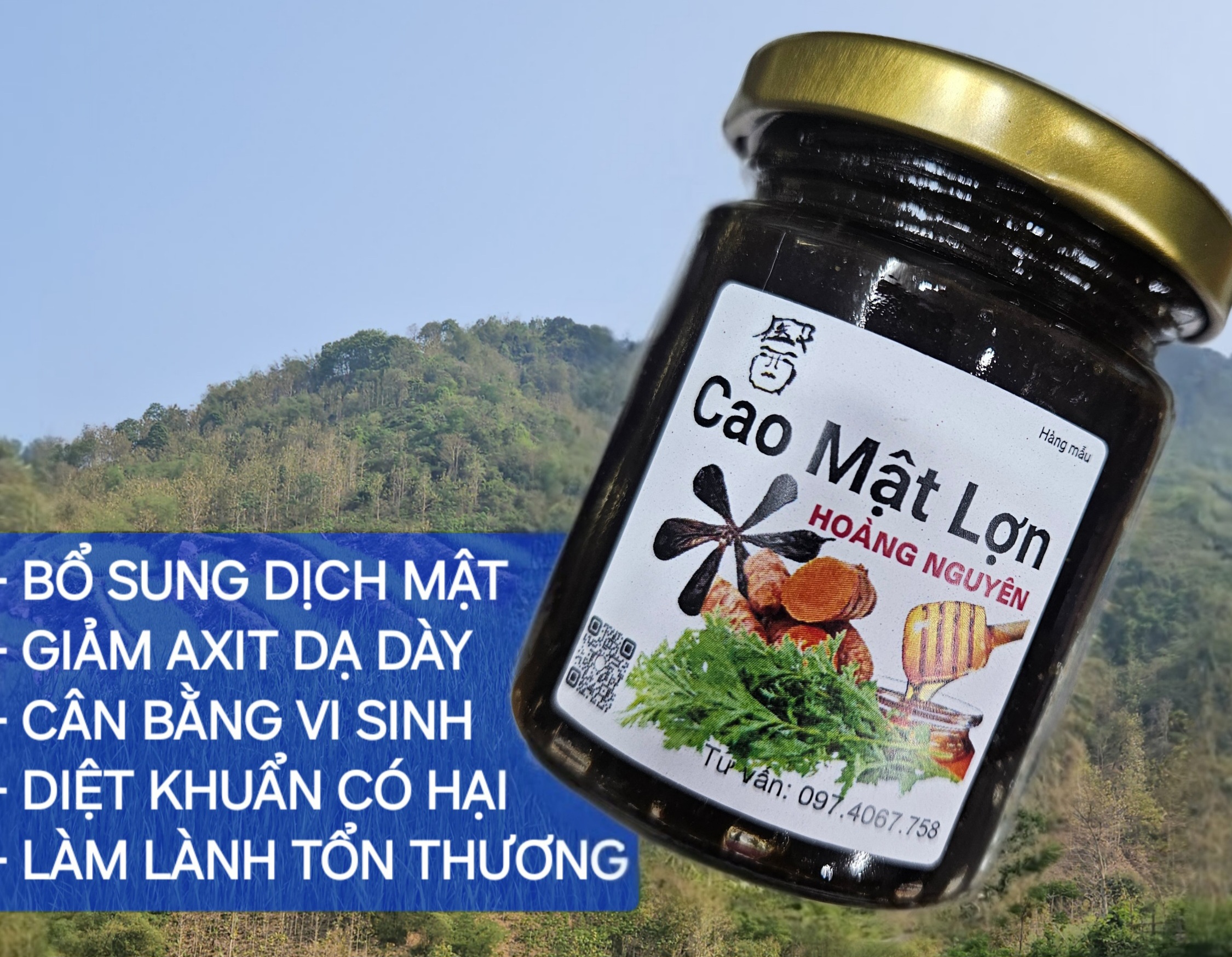 Cao mật lợn Hoàng Nguyên – sản phẩm tự nhiên, tinh chế từ mật lợn tươi, giúp hỗ trợ tiêu hóa, thanh lọc cơ thể và tăng cường sức khỏe. Được sản chế biến hoàn toàn thủ công, xét nghiệm định kỳ đảm bảo chất lượng và an toàn cho người sử dụng.